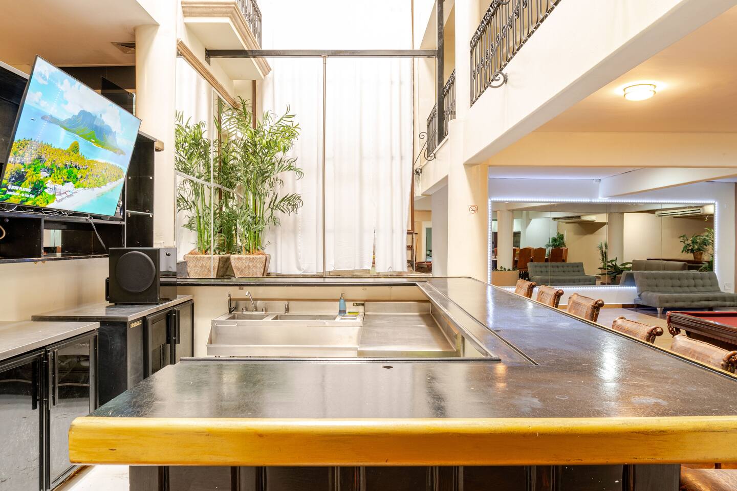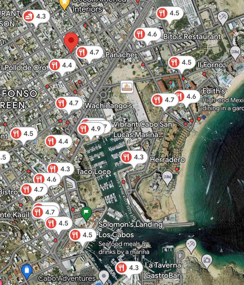 Come experience Cabo like no one has before, in our one-of-a-kind party house! 4 stories of fun with ample common space to practice yoga, work on your pole dancing, shoot some pool or relax and hang with your friends while enjoying a fresh cocktail or mocktail. Upstairs has 9 private bedrooms you can escape to when you need a moment to chill or take a nap to recover from all the fun Cabo has to offer. House has 9 bedrooms, 8 with private attached bathrooms. Pool table, dance/DJ area, and commercial kitchen and bar. Absolutely ready for anything you want to throw at the house! Short walk to a modern grocery store, Walmart, the Marina, and all the nightlife / Beach offerings of Cabo! Our eclectic party house comes fully equipped with top notch commercial kitchen and option for professional chef, as well as a maid to make sure you can focus on having fun. Leave the cleaning up and food prep to us! Breakfast and afternoon meal provided (when you like), and of course if you want to schedule a gourmet dinner we can always accommodate! Some of our guests have brought their caught fish from charters for the best sushi experience you can have this side of Japan! Enjoy a sunset cruise to the arch or a guided hike to the secluded lovers beach with our local captains and guides, or let us plan your excursion to the remote parts of Baja Sur surrounding Cabo for a unique immersive experience. A surf trip to Cerritos or whale watching is always a group favorite! This space is evolving fast, if you donโt see something youโre hoping to, please reach out and ask, thereโs a good chance weโve already made some updates that are not reflected in the pictures yet! ๐๏ธ Unwind in Style: 12 well-appointed bedrooms provide a restful retreat for everyone, with sumptuous linens and all the amenities you need for a rejuvenating stay. ๐ฝ๏ธ Gourmet Kitchen: Whip up a feast in the fully-equipped kitchen, complete with modern appliances, cookware, and ample space for dining and entertaining. ๐ป Work & Play: Stay connected with high-speed Wi-Fi and enjoy streaming your favorite shows on large flat-screen TVs. Gigabit wifi. ๐ Unbeatable Location: Our prime downtown location puts you in the center of it all โ the marina, mall, and a variety of dining options are just steps away, while the iconic Medano Beach is a leisurely 10-minute walk from your door. ๐ Parking & Transportation: Enjoy the convenience of on-site parking and easy access to public transportation, making it a breeze to explore everything Cabo has to offer. ๐ Safety First: Your peace of mind is our priority. The property features secure entry, and our attentive team is available 24/7 to assist with any questions or concerns. ๐ Top-Rated Host: Trust in the quality of our exceptional service, as we consistently receive glowing reviews from our satisfied guests. Don't miss out on the chance to experience the ultimate Cabo getaway in our luxurious downtown villa. Book now for an unforgettable vacation filled with sun, sand, and excitement! ๐๏ธ๐๐ผ
