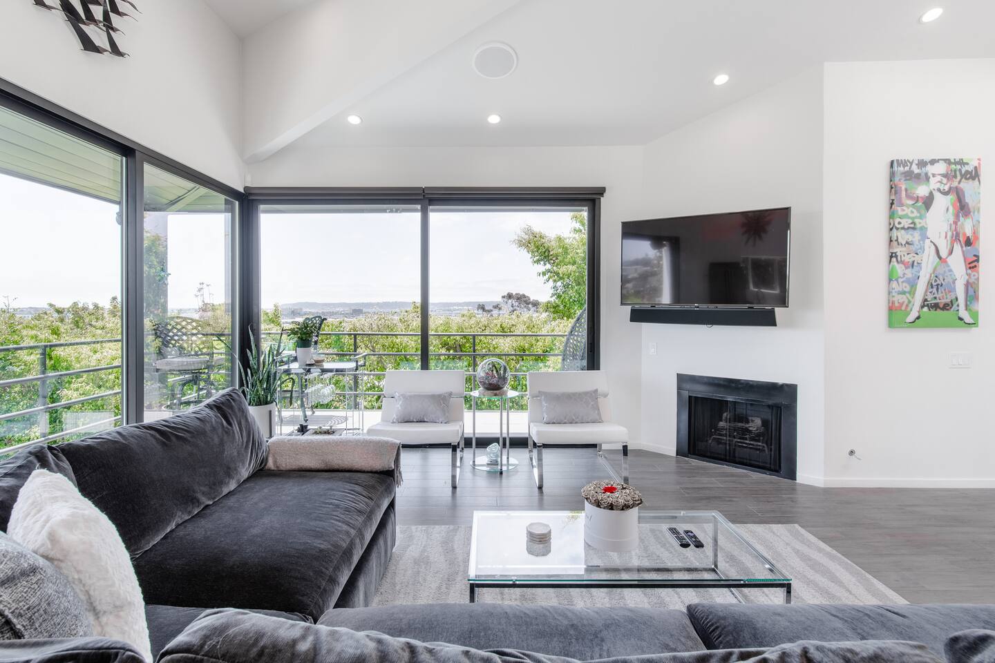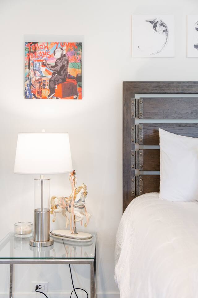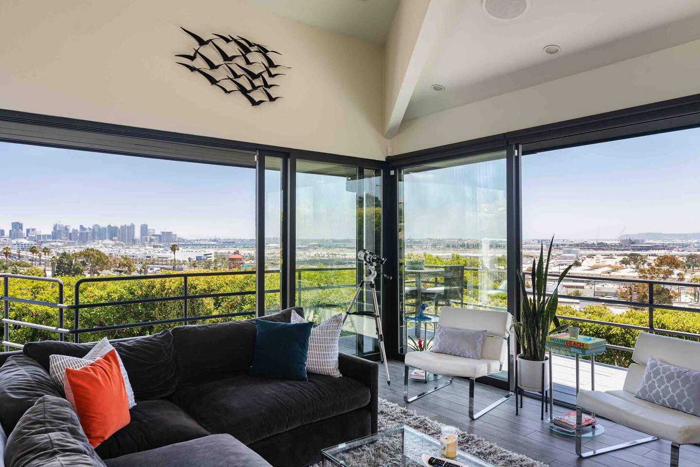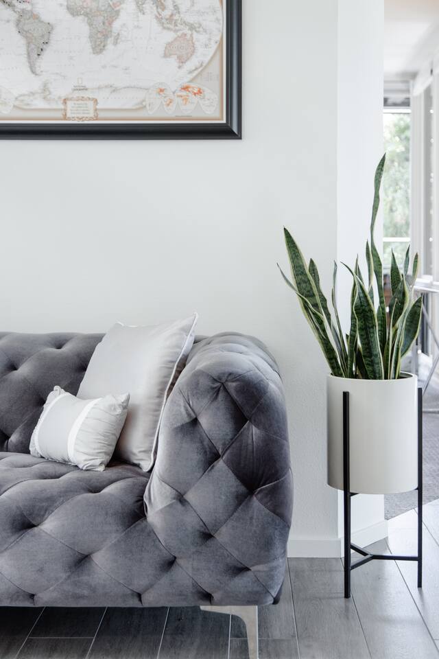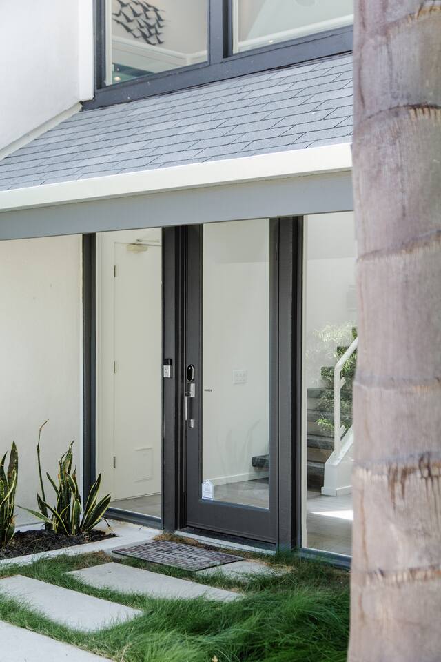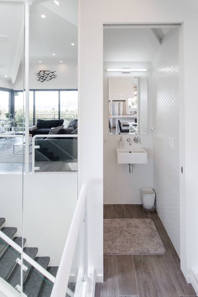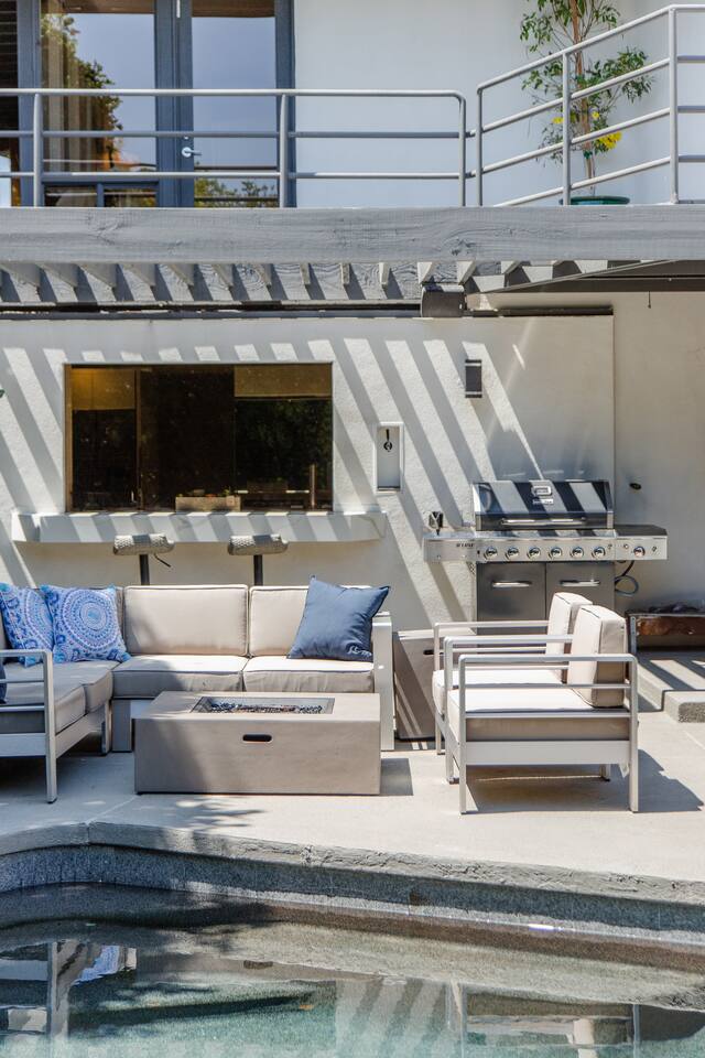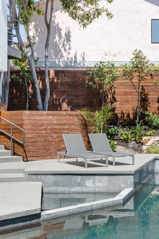 Sink into the alfresco couch by the sparkling pool at this tranquil urban oasis minutes from downtown. Floor-to-ceiling windows and La Cantina sliding doors fill the home with natural light and bay breezes, while gloss units and velvet add luxury. Configured for families and groups of friends/couples with the master bedroom is on the top floor, two bedrooms on the center floor, and the pool casita (with bed) is located outside by the pool and spa. Three of the four bedrooms have optional fold away bed that can be set up for you upon request. Guests are able to use the entire property except for the crawl space under house, garage, one locked kitchen cabinet, and the master bedroom closet. We have a professional AirBNB co-host who will be available as needed throughout your stay as we often travel when the house rents and live in it when not traveling. The property is perched above Old Town in the historic North Mission Hills with panoramic unobstructed views of the downtown skyline, San Diego Bay, and Point Loma. One of the bedrooms is separate from the rest of the house located downstairs by the pool; great for privacy.