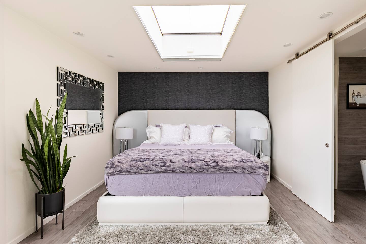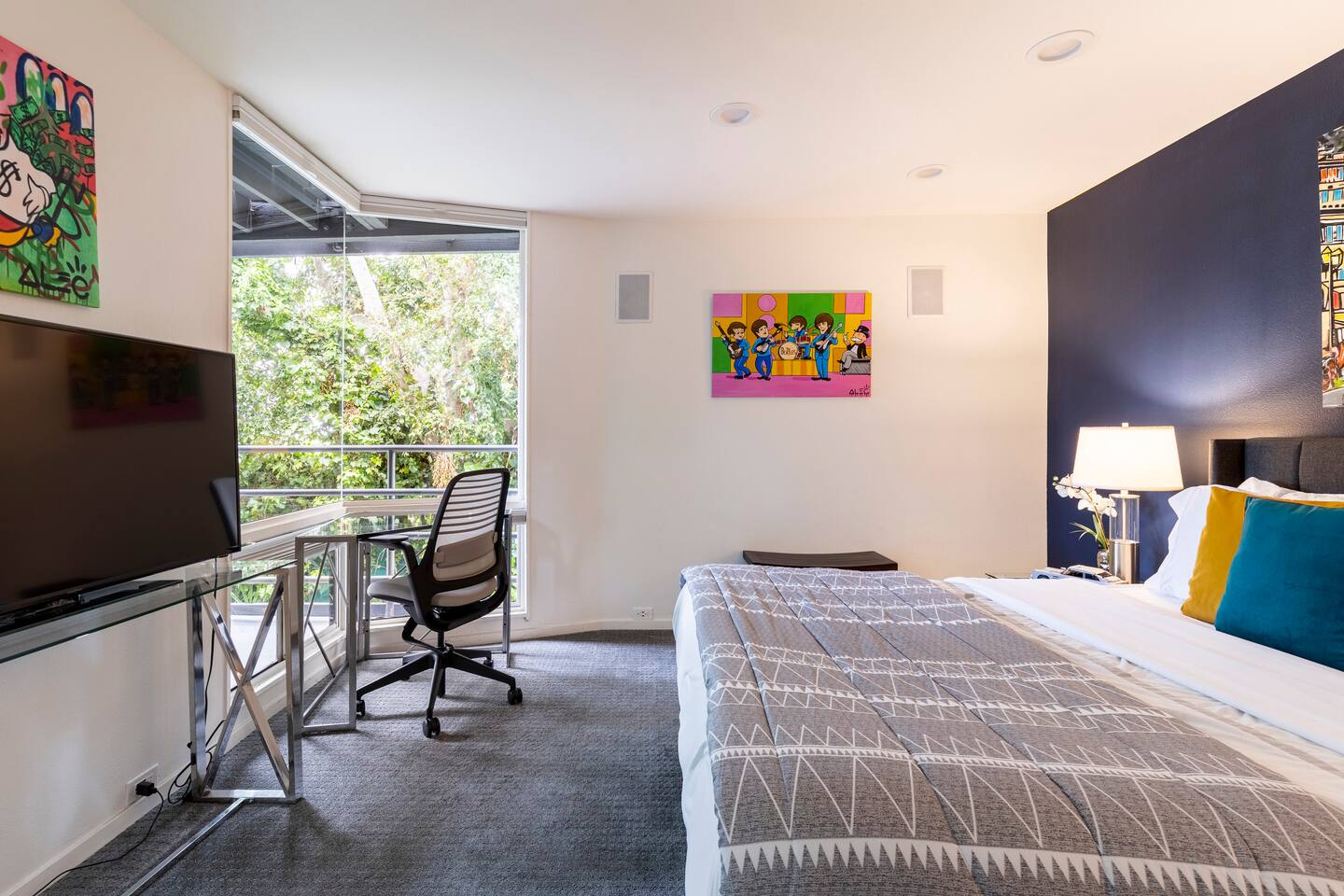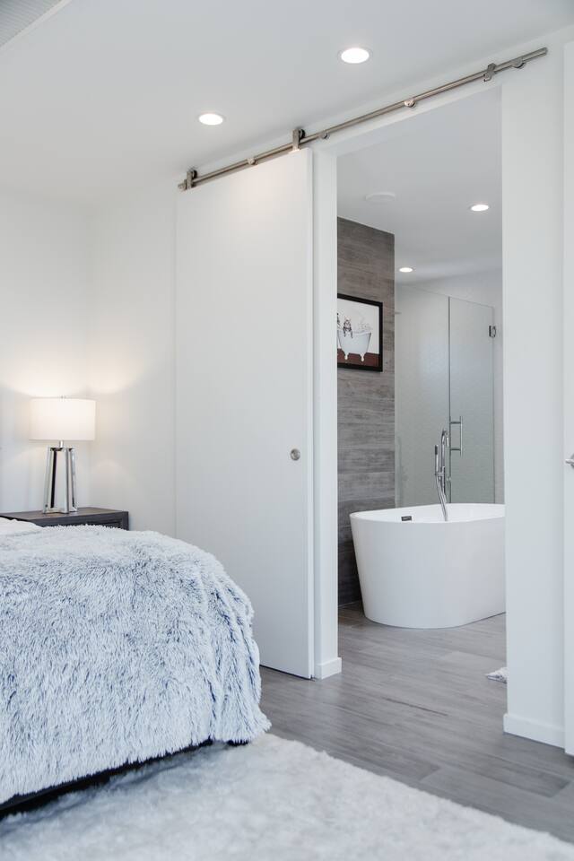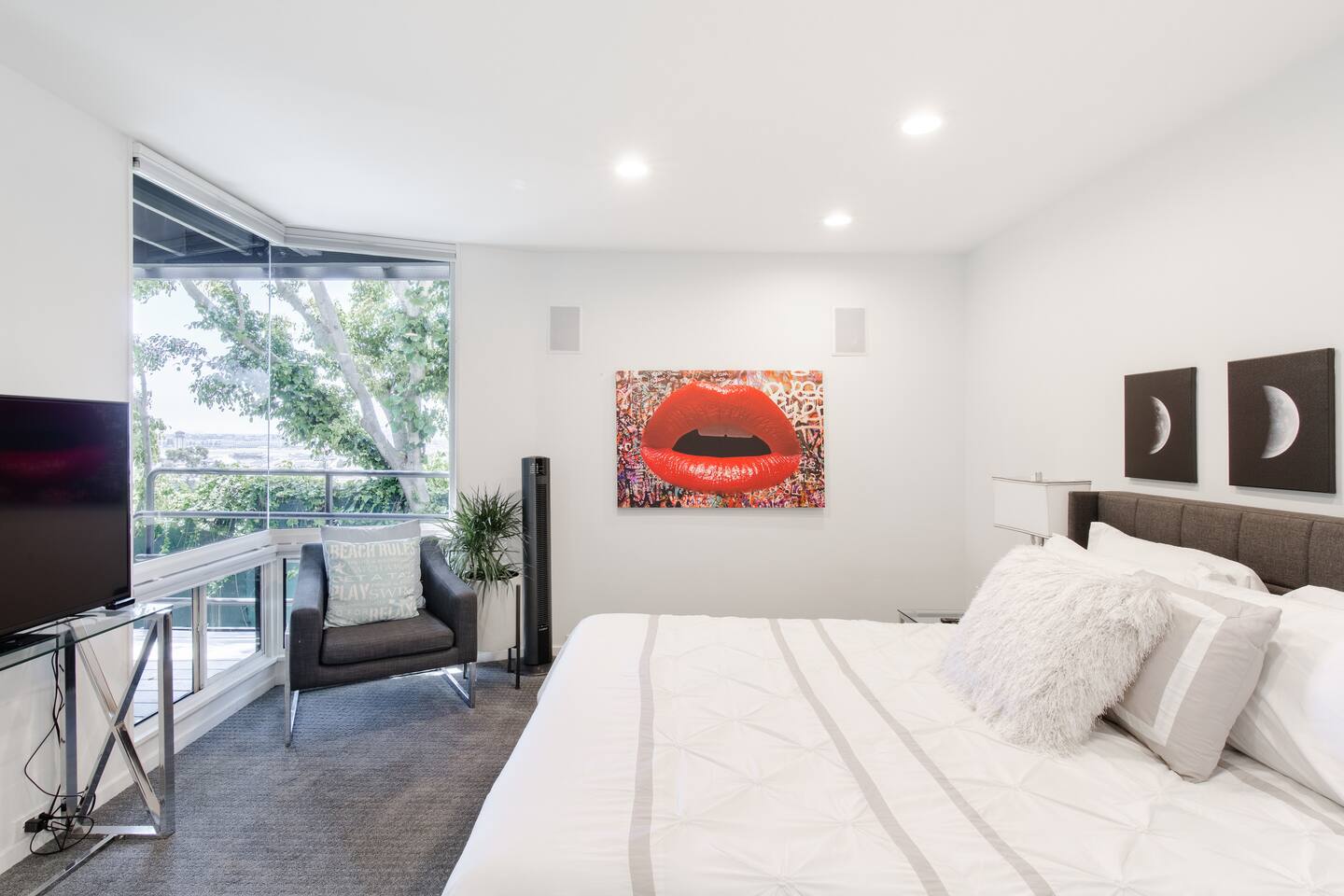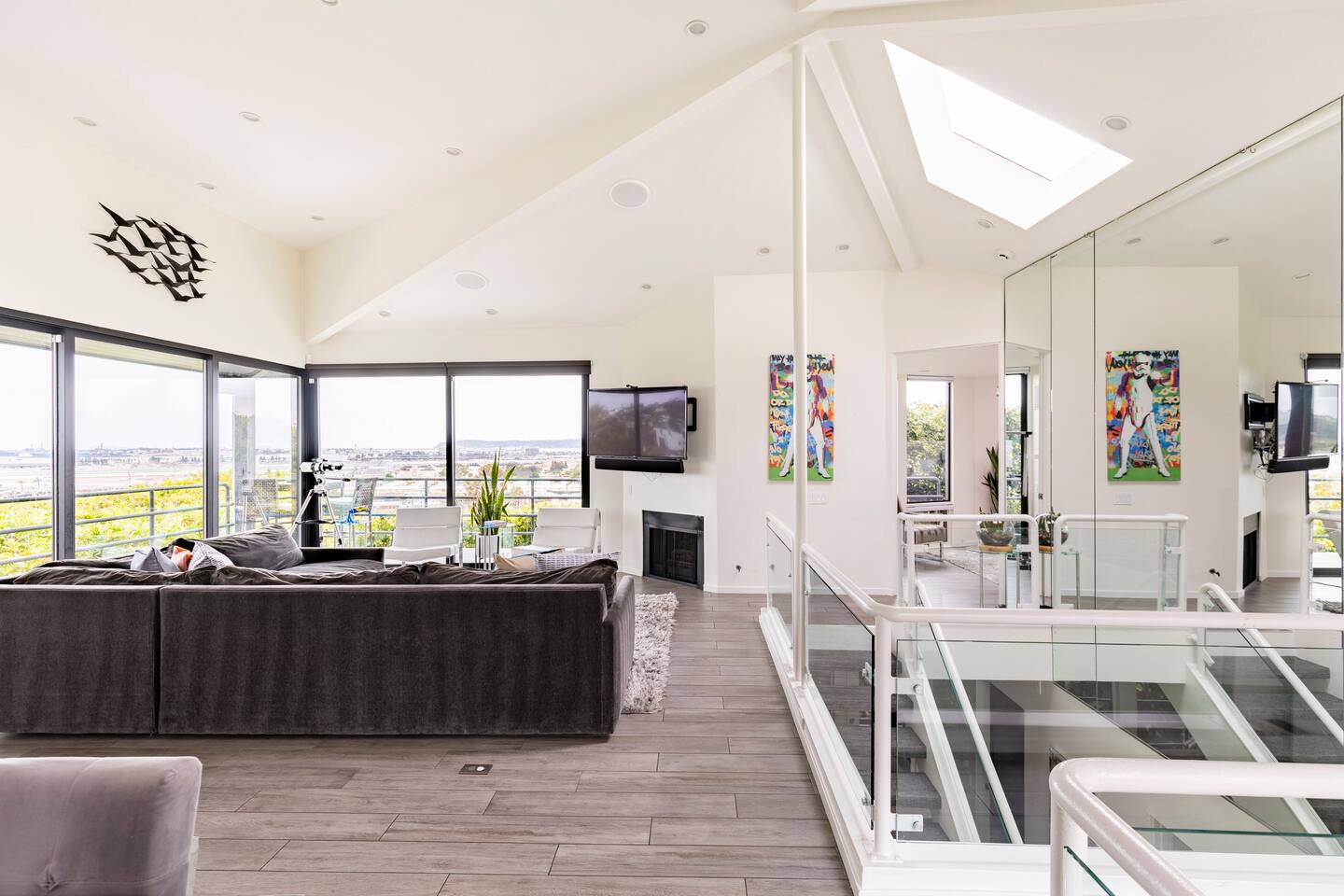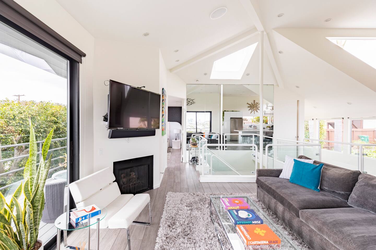 Sink into the alfresco couch by the sparkling pool at this tranquil urban oasis minutes from downtown. Floor-to-ceiling windows and La Cantina sliding doors fill the home with natural light and bay breezes, while gloss units and velvet add luxury. Configured for families and groups of friends/couples with the master bedroom is on the top floor, two bedrooms on the center floor, and the pool casita (with bed) is located outside by the pool and spa. Three of the four bedrooms have optional fold away bed that can be set up for you upon request. Guests are able to use the entire property except for the crawl space under house, garage, one locked kitchen cabinet, and the master bedroom closet. We have a professional AirBNB co-host who will be available as needed throughout your stay as we often travel when the house rents and live in it when not traveling. The property is perched above Old Town in the historic North Mission Hills with panoramic unobstructed views of the downtown skyline, San Diego Bay, and Point Loma. One of the bedrooms is separate from the rest of the house located downstairs by the pool; great for privacy.