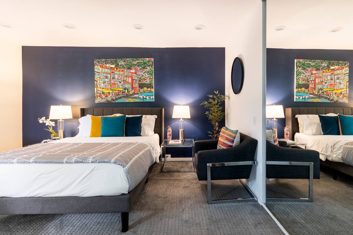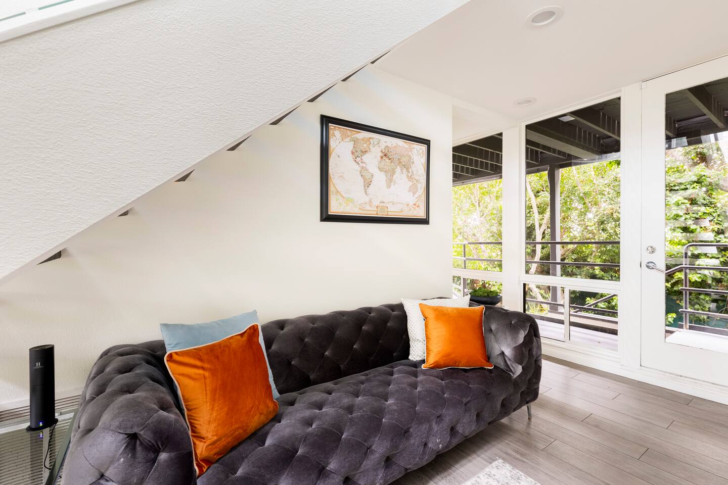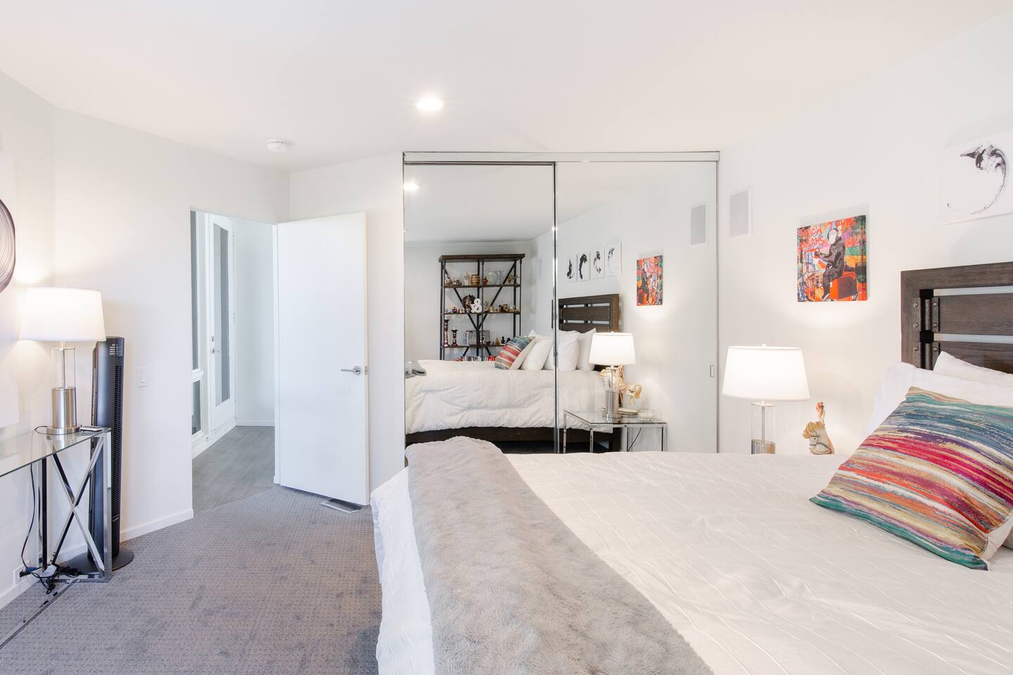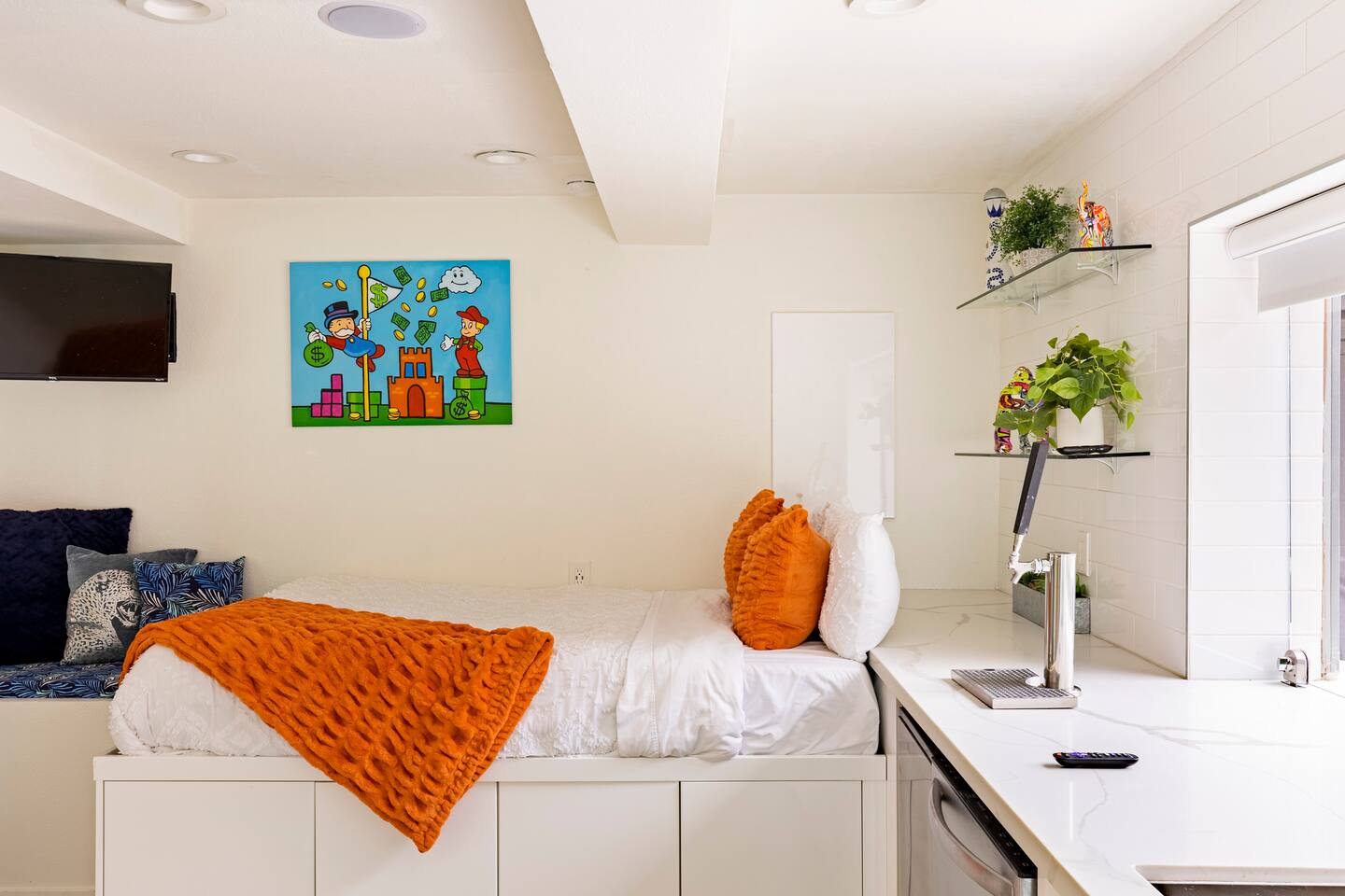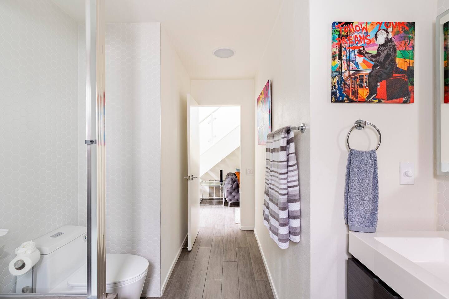 Sink into the alfresco couch by the sparkling pool at this tranquil urban oasis minutes from downtown. Floor-to-ceiling windows and La Cantina sliding doors fill the home with natural light and bay breezes, while gloss units and velvet add luxury. Configured for families and groups of friends/couples with the master bedroom is on the top floor, two bedrooms on the center floor, and the pool casita (with bed) is located outside by the pool and spa. Three of the four bedrooms have optional fold away bed that can be set up for you upon request. Guests are able to use the entire property except for the crawl space under house, garage, one locked kitchen cabinet, and the master bedroom closet. We have a professional AirBNB co-host who will be available as needed throughout your stay as we often travel when the house rents and live in it when not traveling. The property is perched above Old Town in the historic North Mission Hills with panoramic unobstructed views of the downtown skyline, San Diego Bay, and Point Loma. One of the bedrooms is separate from the rest of the house located downstairs by the pool; great for privacy.