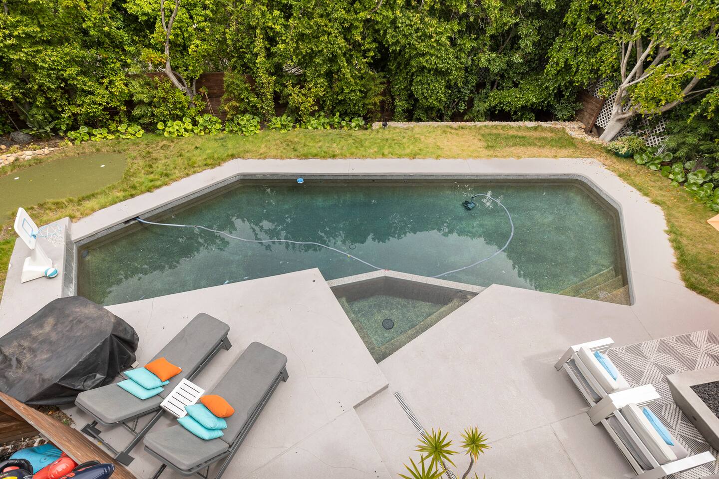 One of the bedrooms is separate from the rest of the house located downstairs by the pool; great for privacy.