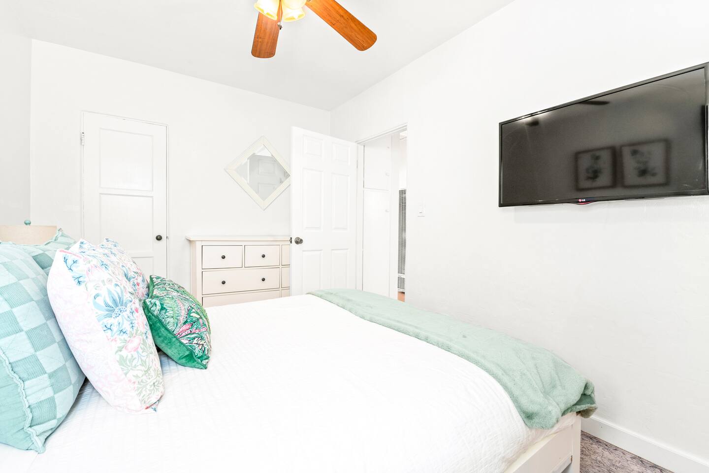 We love to host. Our property has two houses on it and this is the south facing front house - behind it is a 4br house also available on AirBNB. Our house is located steps from great restaurants both fancy/affordable. Starbucks is directly behind the property as a great first stop, from there there are literally over a hundred places to go for food in the five blocks between the house and beach. Here's a sampling: list of places I love will be added later when I have more time. ———— The beach and bay are both right down the street, five blocks away, in different directions. And when you get tired of surfing, swimming or sunbathing... you can come back, relax and dry-off in the private back yard. Its a great place to BBQ. Everywhere in Pacific Beach is walking distance from my place. You're 15-20 minute drive from Mission Valley's shopping and the famous Fashion Valley shopping area. Sea World is only a 10 minute drive away, you can walk to the Catamaran Hotel for their daily dinner ferry, Downtown is a little over 20min, and the international border (Tijuana) is around 45min. If you are adventurous, you can go paddle boarding or kayaking in the bay, surfing (surf school has all the gear you need) check out Pacific Surf School or Surfer Girls Surf School, or snorkeling at the Cove in La Jolla. For the land loving, biking and hiking at nearby Mission Bay and the Boardwalk are both great. On my run around the bay every evening in the summer I see Sea World's famous fireworks show every night. You can expect this listing to be clean but due to our close proximity to the beach you may find a permanent stain or minor breakage; we routinely replace items with cosmetic damage but not after every guest. I am happy to help you figure your way around with maps/recommendations. Just ask!