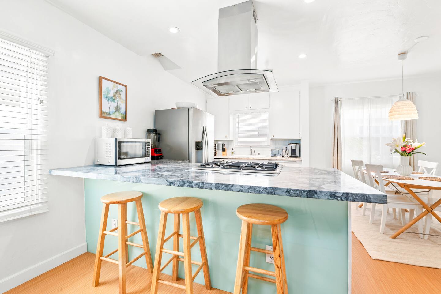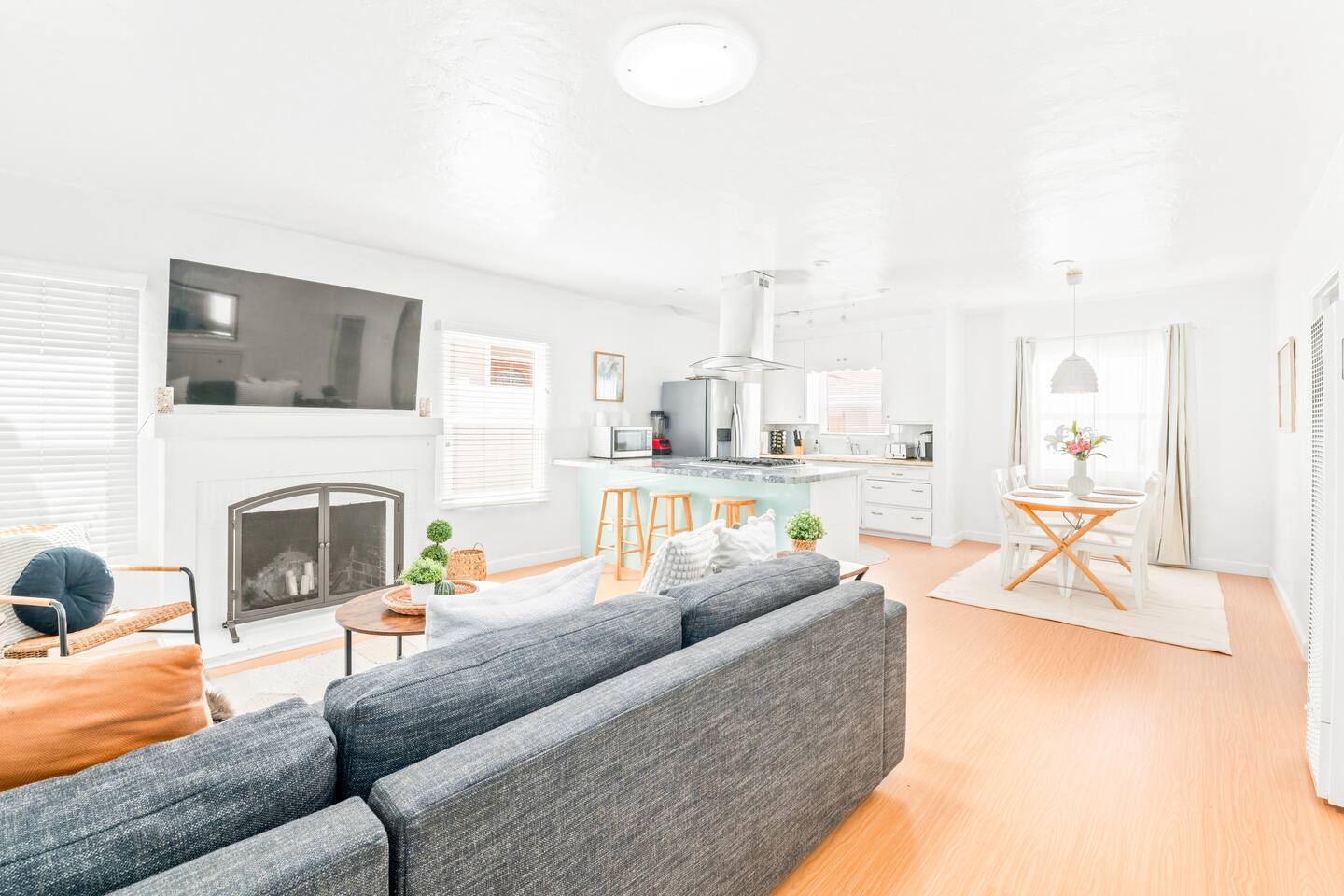 Great Reviews, Pro Cleaners, Experienced Host. Instant Booking Confirmation. Renovated 1945 Beach Bungalow with great indoor and outdoor living spaces. Enjoy living steps from the ocean in Pacific Beach. We are a 5 min walk from a hundred restaurants/activities and about ten minutes from downtown. Pacific Beach has the only boardwalk - its miles long and just a quick uber or bus ride from Downtown. Central location means Starbucks (and everything else) is 100 feet away.