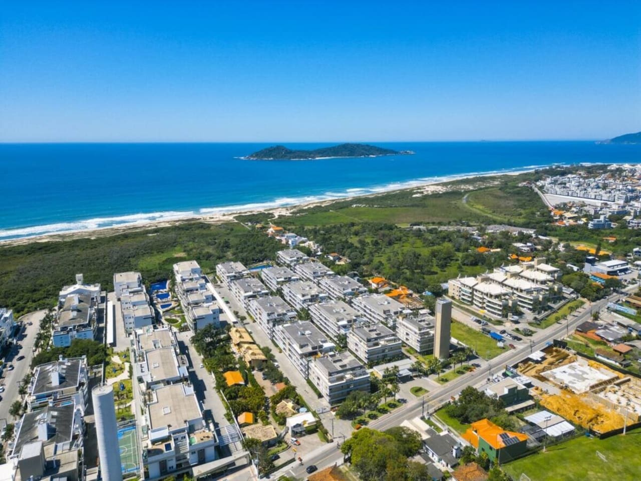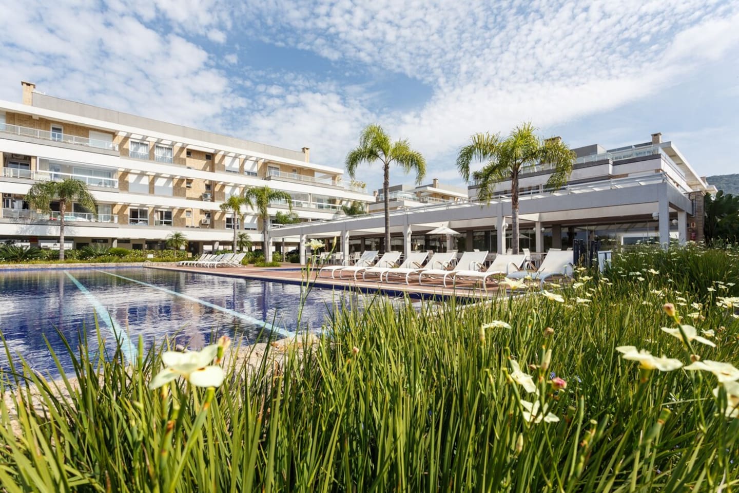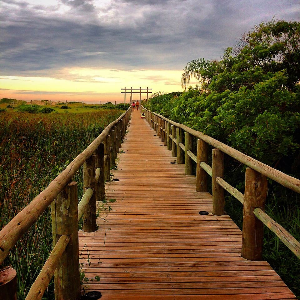 Steps to Campeche Beach with exclusive access via the condo’s deck/boardwalk. Resort amenities: pool, gym, sauna/spa, cinema room, games lounge, kids playroom/playground and 24-hour doorman security. Inside: fast Wi-Fi, A/C, Smart TV and a full kitchen—great for remote work. Self check-in + secure parking. Walk to cafés/markets and kitesurf; quick ride to the airport and Lagoa da Conceição. Beach mornings, sunset walks, zero hassle.